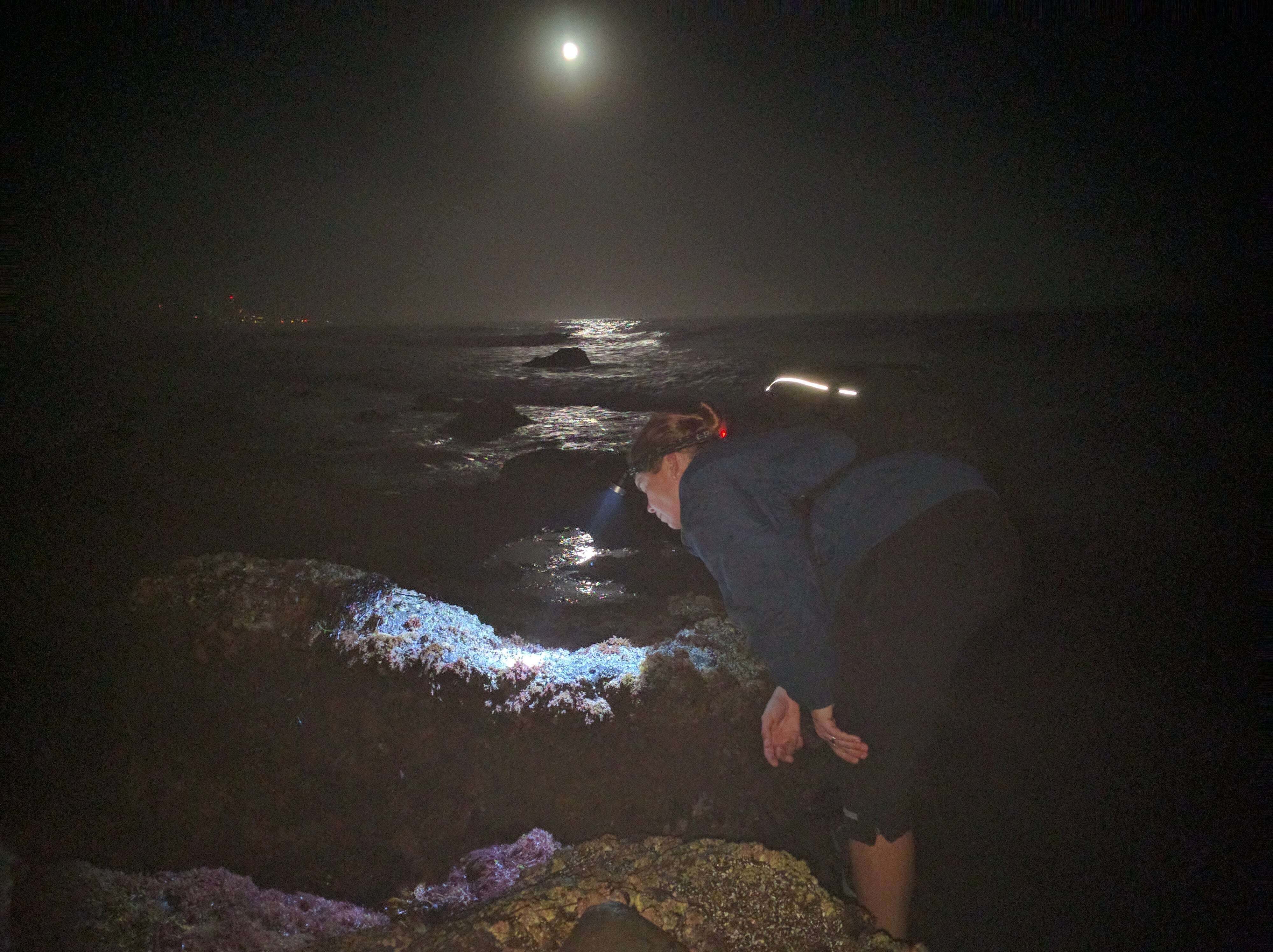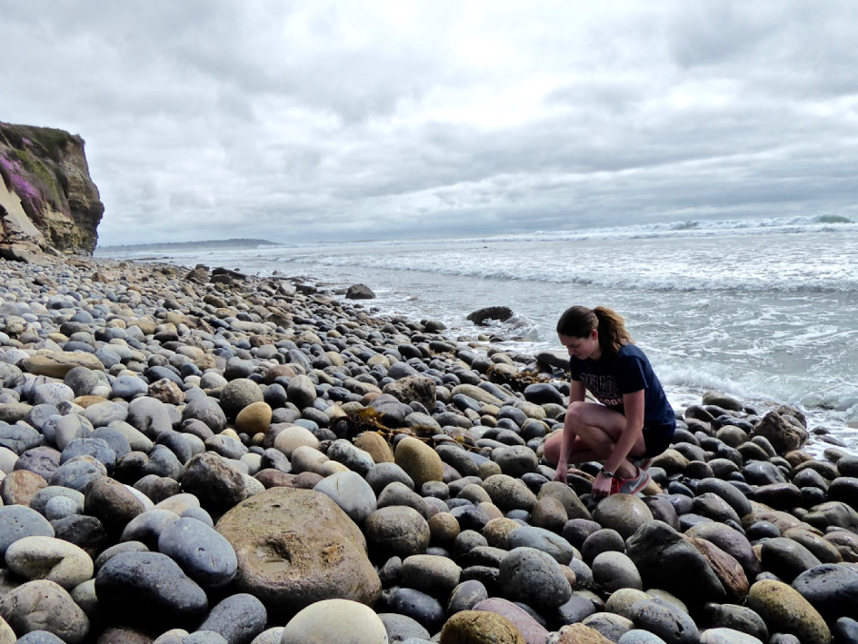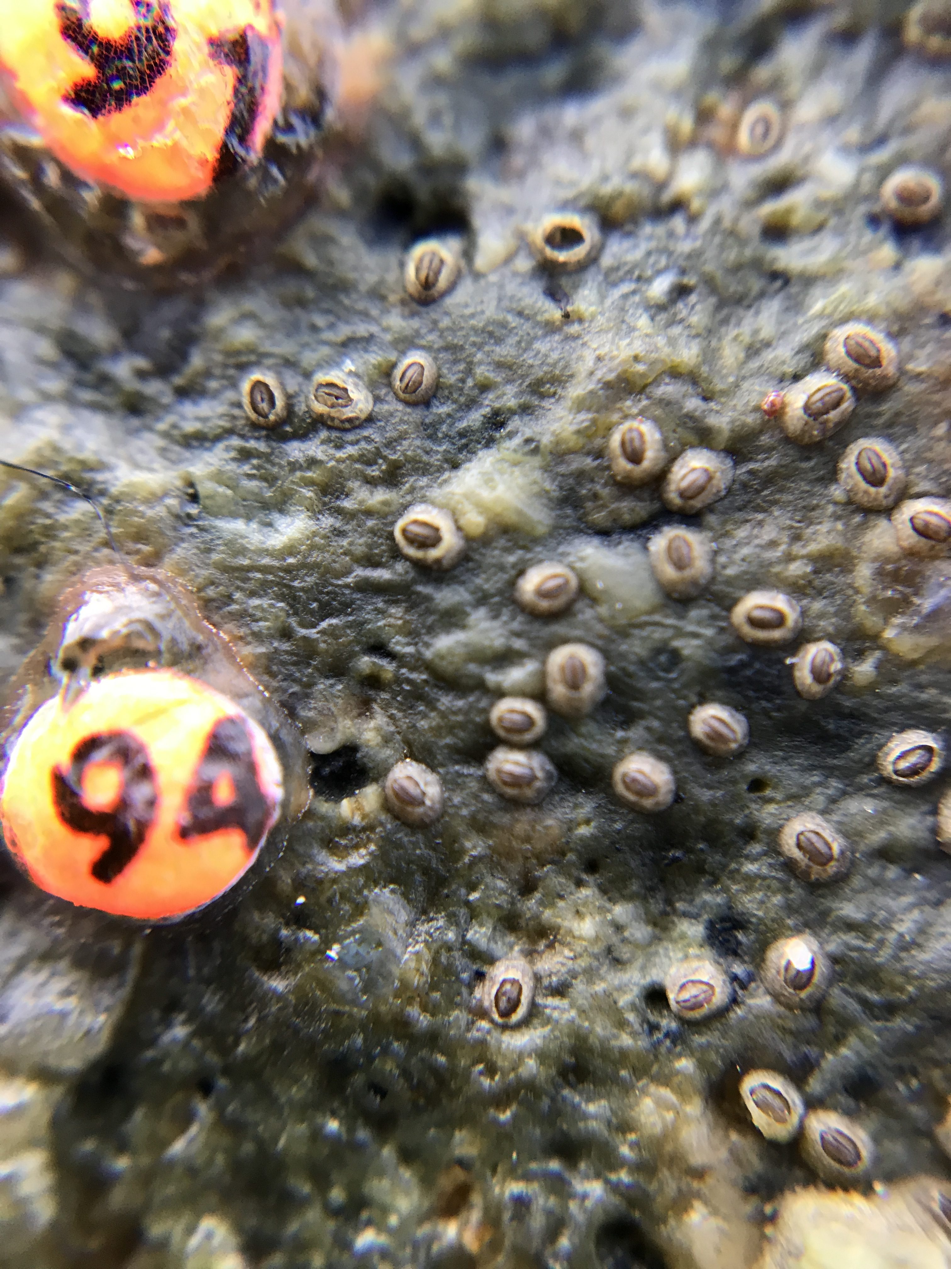 - Nathalie Reyns tagging barnacle plots in the rocky intertidal for post-settlement mortality study.