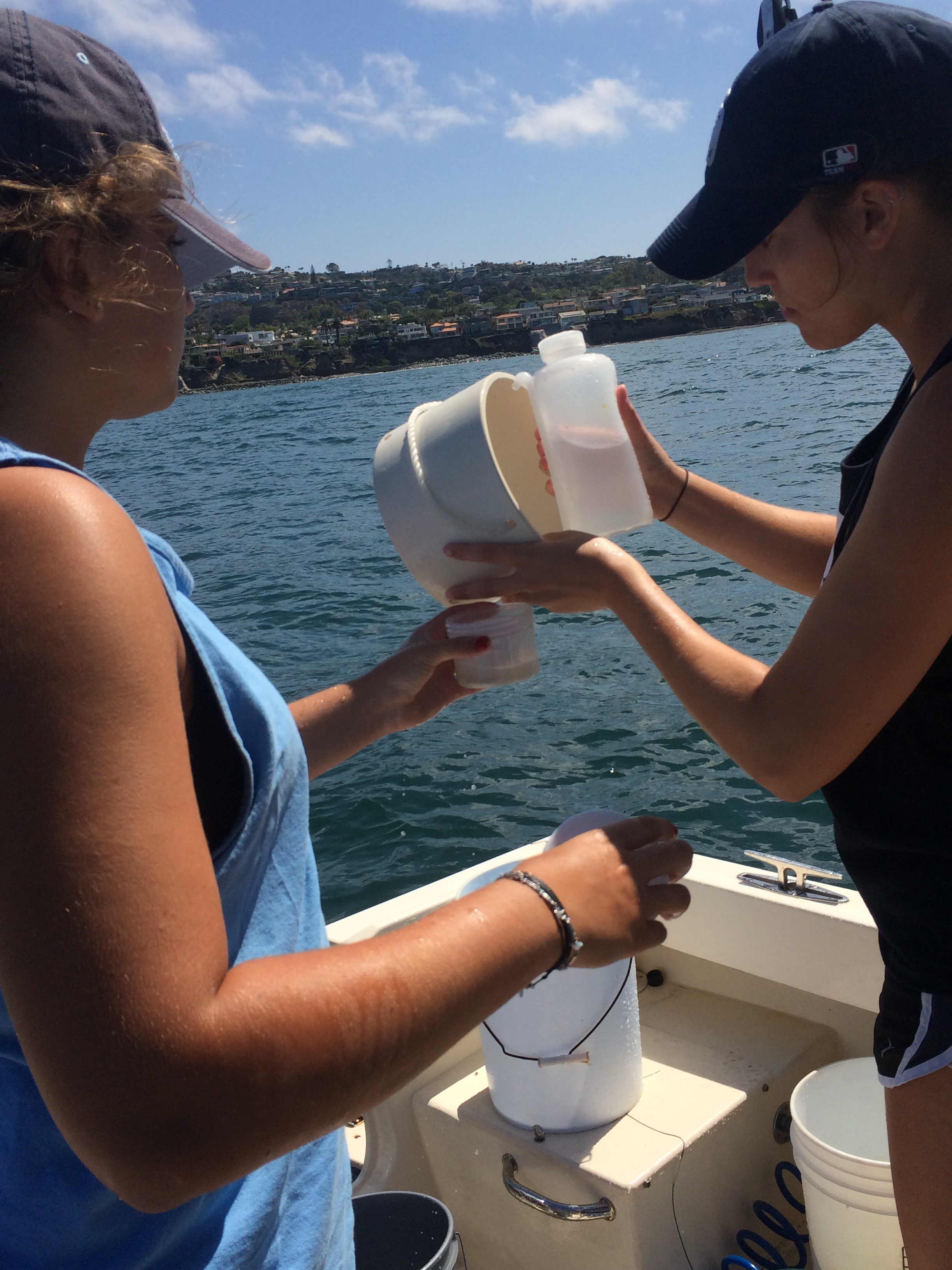 - Meredith Olson and Jill Pryor sieving plankton samples.